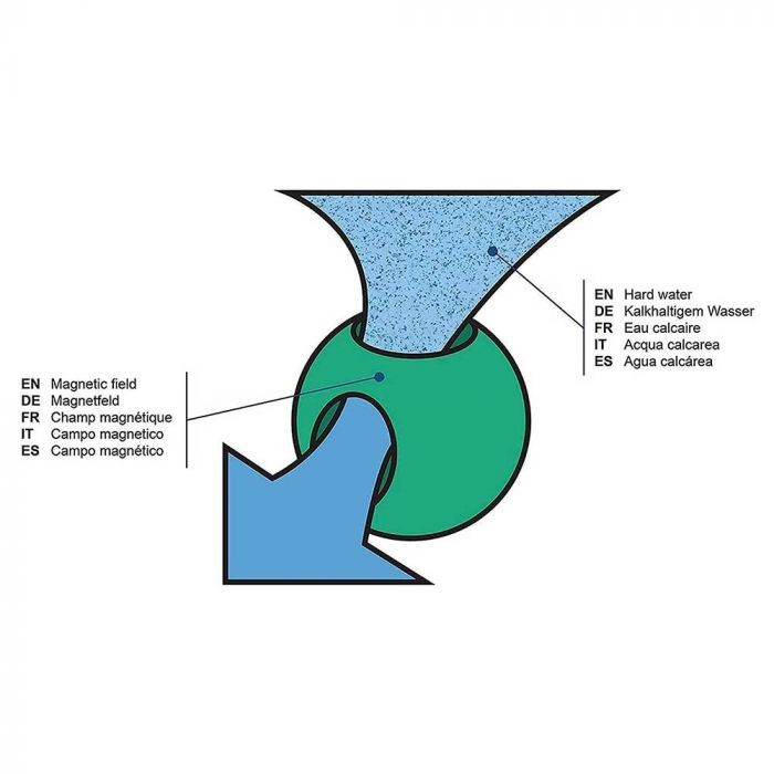 La balle contient des aimants qui génèrent des champs magnétiques pendant la rotation du tambour. Ces champs modifient momentanément la structure des cristaux de calcaire dissous dans l'eau, réduisant ainsi leur capacité à se déposer.